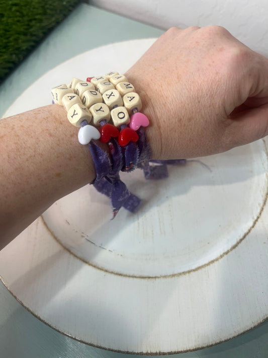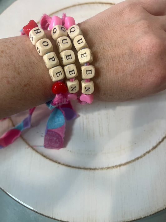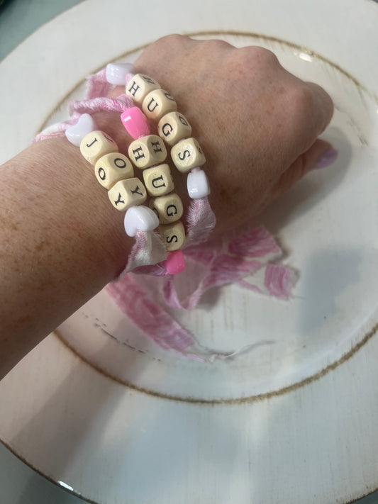 BFF Handmade Fabric Bracelet with Wood & Plastic Beads – Adjustable Tie Closure