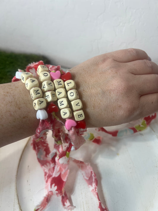 Handmade Fabric Bracelet with Wood & Plastic Beads – Adjustable Tie Closure