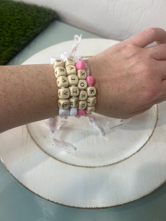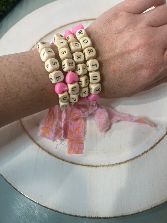 Handmade Fabric Bracelet with Wood & Plastic Beads – Adjustable Tie Closure