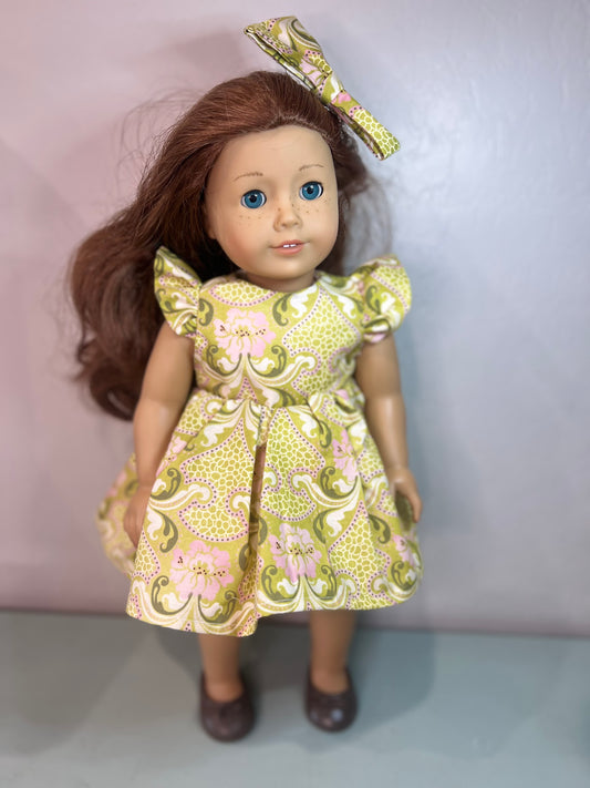 Handmade Spring Time Reversible 18” doll dress